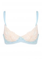 Окунитесь в невесомое облако мечты с этим изысканным бюстгальтером. Нежное сочетание голубого и бежевого кружева создает элегантный и утонченный... Показать полностью