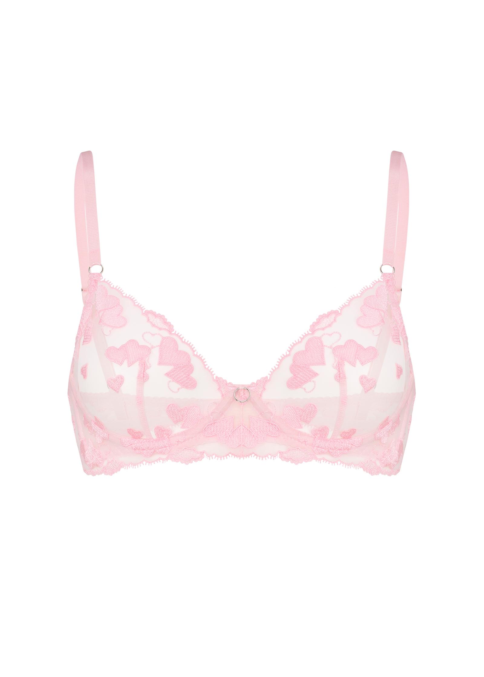 Бюстгальтер Lovely Pink из нежно - розовой сеточки с вышивкой в форме сердец.