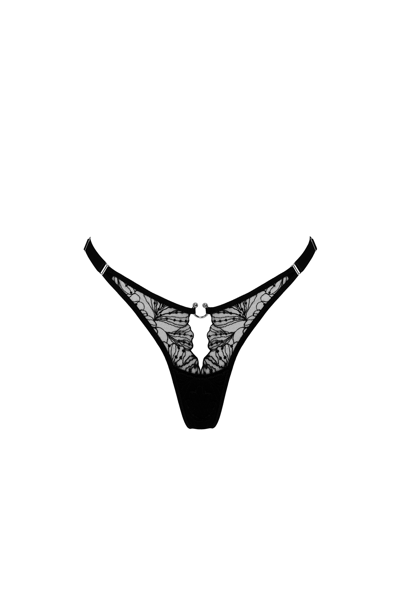 Трусы из черного кружева c пикантным вырезом спереди - Ember. Мягкая регулировка на бедрах.