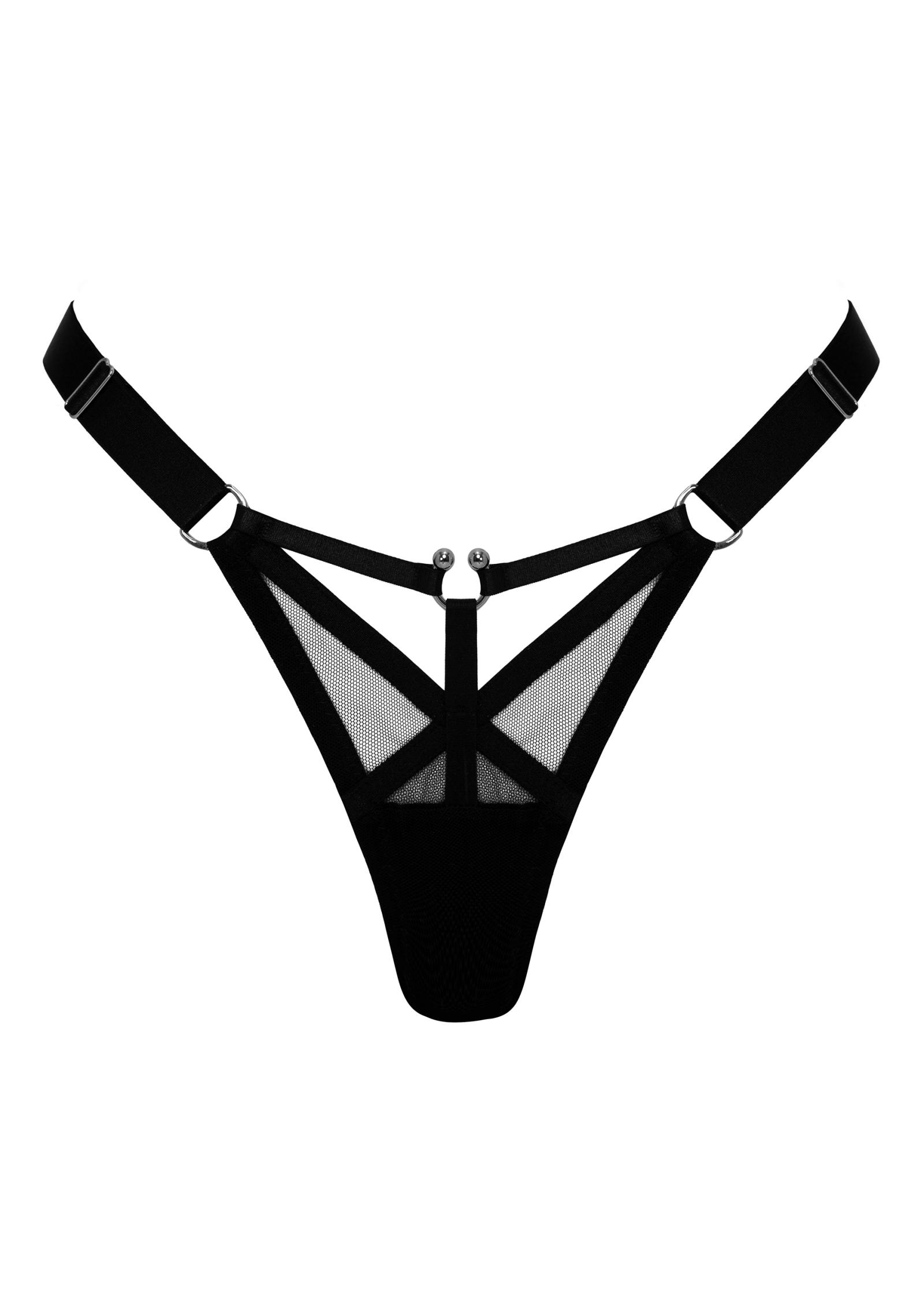 Трусы с пирсингом Berta in black в черном цвете с мягкими бретелями и регулировкой в размере